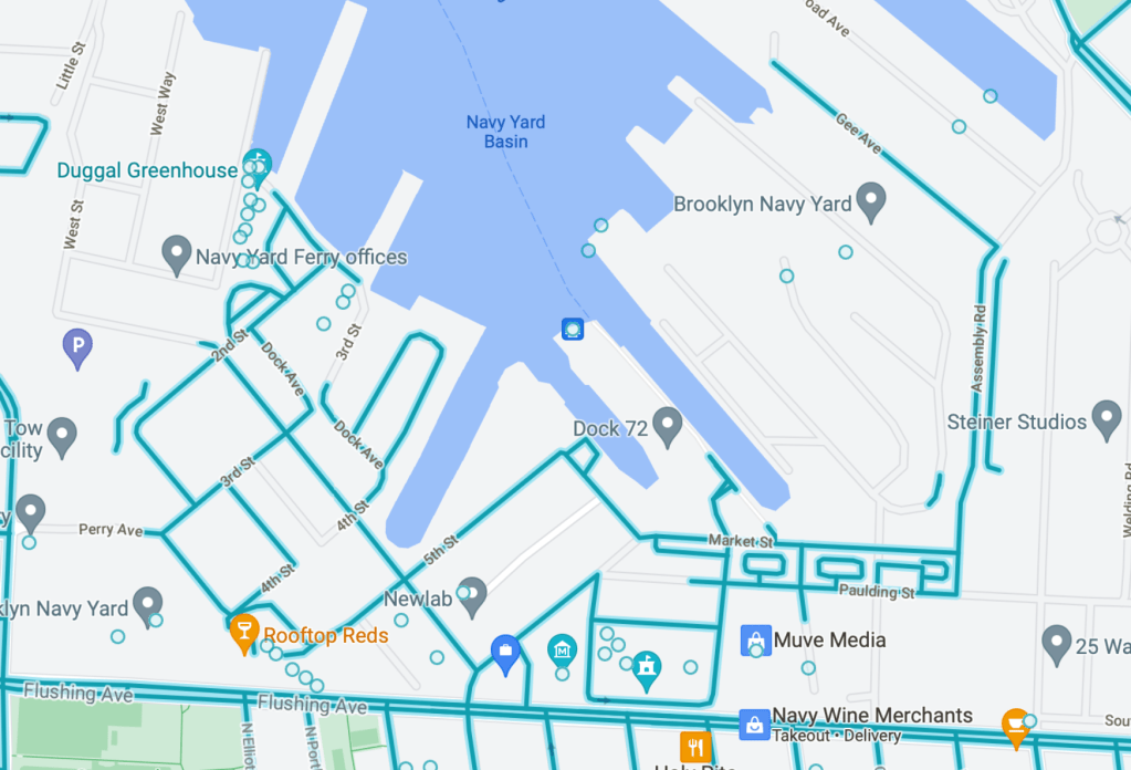 Over the course of two years I’ve created an experimental film within the online territory of the Brooklyn Navy Yard. As a site-specific work, the Navy Yard is important because it’s one of the largest private/public spaces in New York never previously captured by the Google Street View Car. In 2017, I took a job as a print technician at a commercial facility within the Navy Yard’s gated walls. Earlier, I had been a freelance photographer, and Google Maps contractor — I was creating virtual tours for businesses under a program called “Business View”. Since working with virtual tour technology for 8 years prior, I had been thinking a lot about Street View as a form of cinema — the clunky click-through aesthetics make it challenging to imagine a stop-motion sequence, however, I realized if approached properly an animation could manifest itself. Thinking back to when I first started this project in 2020, it’s funny that it hadn’t occurred to me that I was in virtually uncharted territory — meaning, the Street View car had never been inside the Navy Yard. When I set out to make my first trajectory following Google’s guidelines, I coincidentally chose the area of the Navy Yard because it was an open space without Google’s signature “blue line” representing a path created by its camera-strapped vehicle. It’s important to note that even Google’s guidelines for creating a “blue line” reference cinema — I had to sequentially create 25 spherical images, much like a film frame-rate, in order for a “blue line” trajectory to be published. Whilst I’m not interested in describing the technical process of manually creating spherical images, I will note that I’ve shot all of these images myself using a tripod and timer, and that there is a significant amount of post-processing involved. Since creating my first online image sequence down a single street of the Navy Yard, an entire story has unfolded over the territory. In two years I’ve posted over 3000 Image-spheres, whilst anonymously receiving millions of views. Throughout this essay I will speak about a few of the works currently existing on Street View, their connections over the territory as a whole, and the symbolism within the work I’ve attempted to convey. As both a stop-motion project, and a net-art project I first want to define the term “Image-sphere” and the connotations of spherical media in relation to mapping.